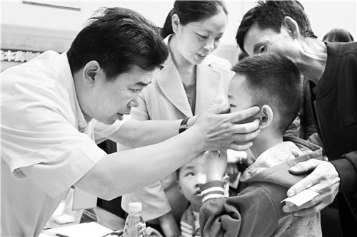 近日,河南省“红会送医计划”渑池县启动仪式在该县人民医院举行。“红会送医计划”项目是一项帮助基层医疗机构提高医疗服务能力和医疗技术水平、减轻群众就医成本、提高群众健康水平的惠民工程。河南省“红会送医计划”郑州大学附属洛阳中心医院专家志愿服务队在渑池县人民医院举行义诊活动。图为义诊现场。 刘 岩 张丽娜/摄