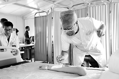 为了庆祝中国首个医师节,6月27日,开封市中心医院启动了以“立足医疗基础,夯实专业特长,营造医患和谐,管理提升质量”为主题的医师节系列活动。急救技能大赛作为首个技能操作活动率先举行。急救技能大赛选拔赛分为“单人徒手心肺复苏术”(内科)和“外科换药术”(外科)两个项目,严格按照“三基三严”的要求,积极组织操作技能训练、选拔,并选拔出参加决赛的人员。