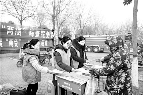 2月19日,修武县妇幼保健院组织医务人员在县文化广场开展“两癌”(乳腺癌和宫颈癌)免费筛查宣传活动。在活动现场,医务人员发放了“两癌”筛查宣传材料,强调“两癌”筛查的重要性。 王正勋 李 峰/摄