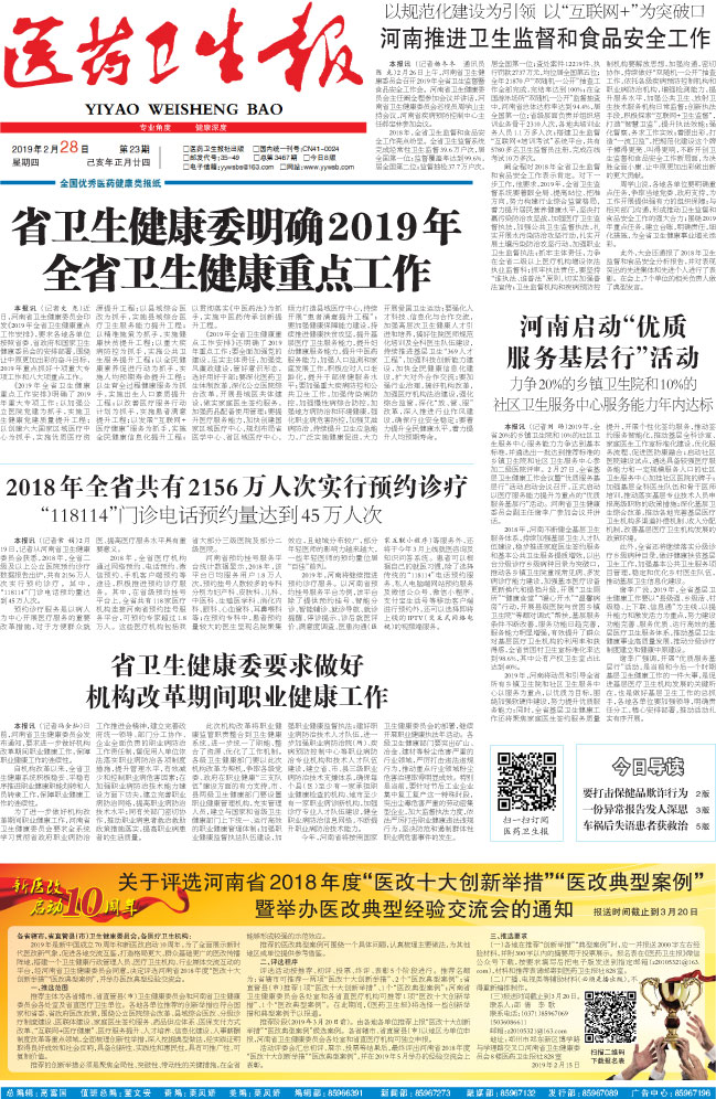 省卫生健康委明确2019年...