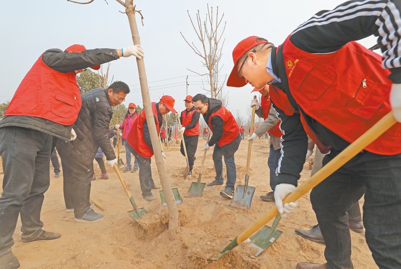 2月28日,河南省卫生健康委员会志愿者在郑州市惠济区花园口镇八堡村黄河湿地植树。此次植树活动由省绿化办、省直绿化办、省直文明办组织开展。省卫生健康委有20余名员工参加。