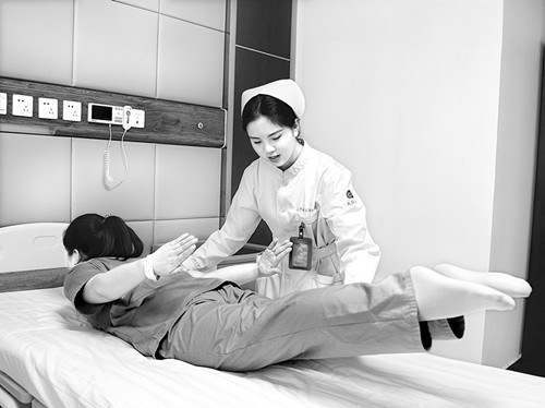 近日,三门峡武强中医院脊柱科依照相关标准,结合医院实际,对患者出入院手续办理流程、腰围和颈托佩戴、肢体康复锻炼等制定护理规范操作标准,让优秀青年护士先行练习,并拍摄规范操作演示视频进行推广。图为护士张慧、牛旭瑶在进行规范操作演示。 刘 岩 姚 鑫 常改荣/摄