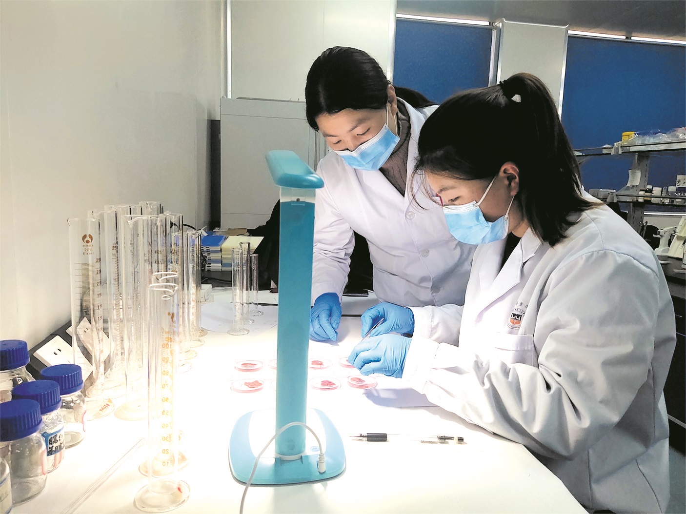 学业导师胡焕焕带领学生做实验