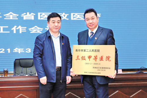 党委书记杨永国代表医院领取三级甲等医院牌匾