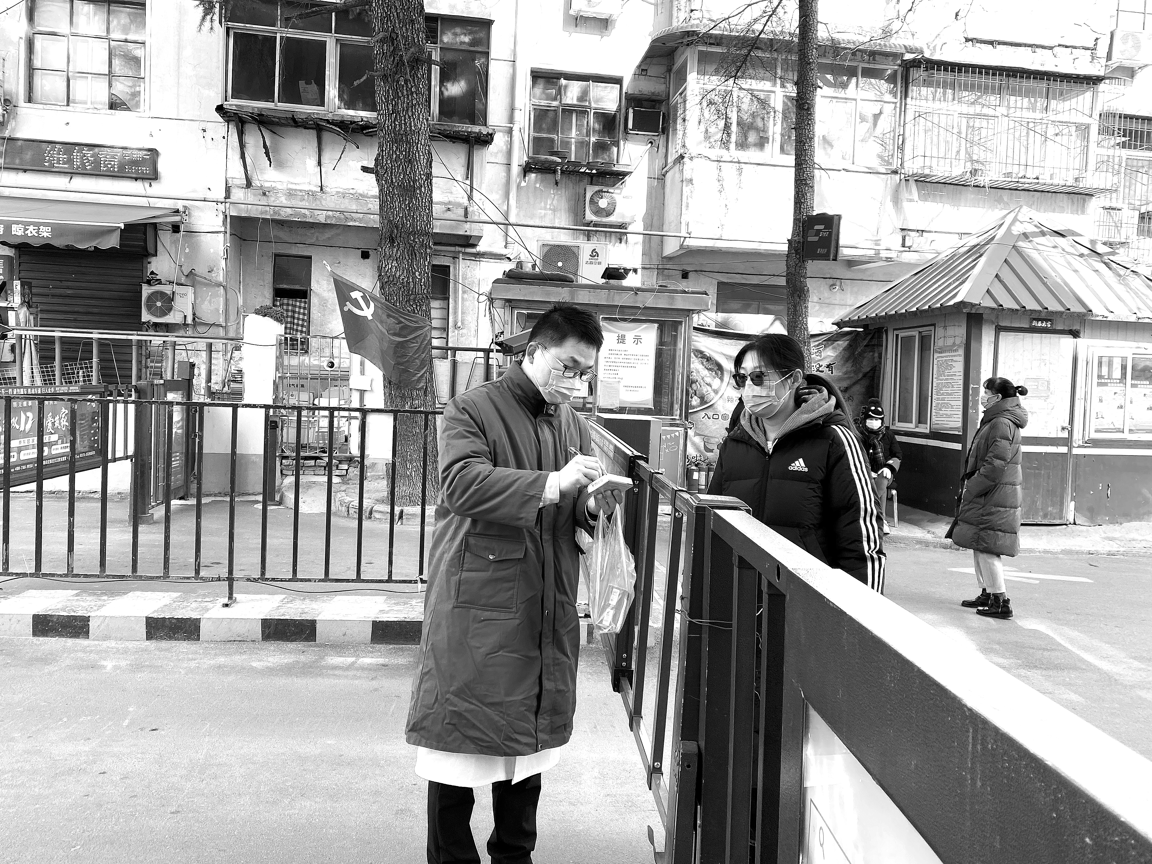 1月16日,郑州市福华街社区卫生服务中心医务人员为管控区慢性病患者上门送药。