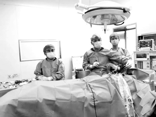 本报讯 (记者王明杰 通讯员王 靖)近日,息县中医院外科收治了1名特殊患者,该患者双侧腹股沟同时出现5种疝并存的问题。 该患者系59岁男性,既往有脑梗死病史,因此次活动后发现双侧腹股沟区可复性包块十几天,站立或活动后双侧腹股沟包块反复出现,并伴有下腹部坠胀感。经外科主任孙伟佳了解病情,并详细查体后,判断其为双侧腹股沟疝,待完善术前各项准备后,于当日行“经腹腔镜全腹膜外腹股沟疝修补术”(如图)。术中,医生见其左侧腹股沟直疝与斜疝并存,右侧腹股沟除直疝与斜疝外,还有股疝存在。该患者全程手术时长1.5小时,身体手术区部位整洁、无出血现象。术后,患者活动自如,无不适症状。 该手术是通过腹腔镜器械,通过后入路,在直视下操作进行的一种腹膜前修补手术。该手术无须进入腹腔,直接进入腹膜前间隙进行操作,具有创口小、术后恢复快、切口不易感染等传统术式无法比拟的优势;同时,不破坏腹股沟区的天然结构,符合无张力修补的原则,无长期术后疼痛;术后,患者复发率低。该手术特别适合复发疝和切口疝的治疗,是治疗腹股沟疝的首选术式。 |