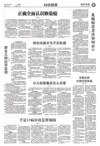 □翟渊鹏 不少女性看到检查单子上的子宫 肌瘤提示,心里就开始发慌,感觉自己是不是得了癌症。 其实,子宫肌瘤是由子宫平滑肌和结缔组织组成,是一种良性肿瘤,有1%的概率会发展成癌症。子宫肌瘤好发于30岁~50岁的成熟女性。 对于无症状的小肌瘤可以观察;出现症状或者较大的肌瘤可使用微创消融术。 实施超声引导下微创消融术。 其中,超声就像是一面“透视镜”,它能让医生看清结节的位置,帮助医生精准地将消融针扎到结节里去。随后,针尖发射能量、产生60摄氏度~90摄氏度高温,让肿瘤细胞的活性完全消失,结节就会被“烧死”。 微创消融术的优点有哪些 创伤小 不必开刀,仅有一两毫米的创口。 快而准 影像实时精准引导,并可在消融后即刻评价消融区域是否完全覆盖肿瘤。 可重复性高 对于较大或多发性肿瘤,微创消融治疗可分步进行,在保证患者安全的同时获得更好的治疗效果。 体质较差的患者也能耐受 与手术相比,微创消融治疗对患者体质要求也比较低,对于那些因体质差而无法手术的患者,微创消融治疗是不错的选择。 可打出“组合拳”对于中晚期肿瘤患者,微创消融手术也可以和放疗、化疗相结合,打出“组合拳”,获得最佳的治疗效果。 微创消融术适合子宫肌瘤吗 肿瘤微创治疗是肿瘤综合治疗的重要组成部分之一,尤其是超声引导下的经皮射频消融技术在治疗肿瘤方面具有创伤小、疗效明确、安全性高、患者恢复快等特点,已经成为继手术、放疗、化疗之后的一种新的 治疗模式。 微创消融术适用范围有哪些 因心、肺、肝功能等原因不能实施手术的原发性肿瘤,尤其是肝、肺等实质性肿瘤;转移性癌灶、术后复 发性灶和多发性癌灶;晚期延长生命提高生存质量的姑息性疗法;因位置原因不能手术切除或术中不能完全切除的肿瘤。尽管微创消融术在肿瘤治疗领域已经取得了显著成果,但并非所有的肿瘤类型和病例都适合这种方法。在进行治疗前,请务必咨询专业医生,根据个人情况制定最佳的治疗方案。 诊断为子宫肌瘤后该怎么办 保持良好的心态:心理因素对疾病的恢复有着重要的影响。因此,保持乐观、积极的心态,相信自己能够战胜疾病 ,对康复大有裨益。 了解病情:了解子宫肌瘤的病因、症状、治疗方法等相关知识,有助于更好地面对疾病。同时,要密切关 注病情的变化,及时向医生反馈,以便调整治疗方案。 遵医嘱:根据医生的建议和治疗方案进行治疗,切勿自行更改用药或治疗方法。如有任何不适,请及时就 诊,并向医生详细描述症状。 注意饮食:保持健康的饮食习惯,多吃蔬菜、水果、全谷类食物和富含蛋白质的食物,保持水分平衡,避 免辛辣、油腻的食物。适量补充营养,有助于身体康复。 总之,微创消融术就像一根神奇的魔术棒,神奇、快速、轻松,适用人群广。 (作者供职于河南省肿瘤医院超声医学科)