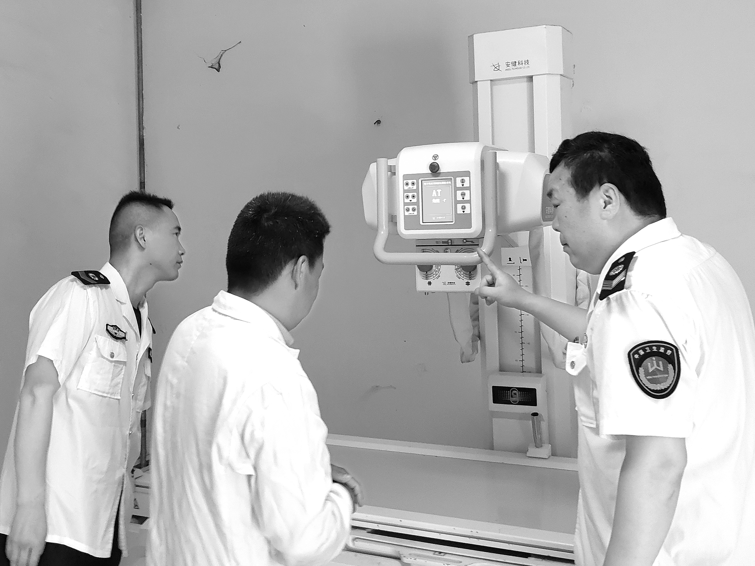 图①6月27日,在确山县一家医院,卫生监督员对医院放射科情况进行检查。6月26日~27日,确山县卫生计生监督所组织卫生监督员在辖区内全面开展国家“双随机”卫生监督检查,进一步提升卫生健康监管的公平性、规范性和有效性。 丁宏伟 霍纯玉/摄