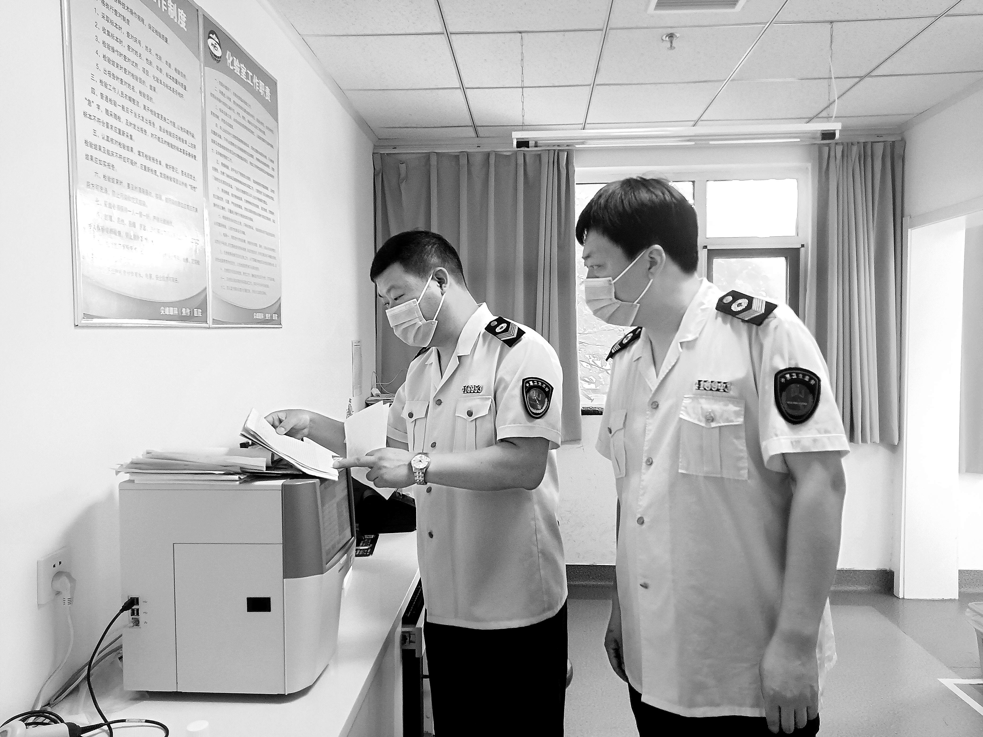 图②6月29日,在焦作市一家医院,卫生监督员检查医师依法执业情况。连日来,焦作市卫生健康技术监督中心卫生监督员对学校卫生、公共场所卫生、生活饮用水、消毒产品及餐饮具集中消毒等进行抽查,抽查结果信息在“双随机”系统及政务网进行公示。 王正勋 侯林峰 李亚坤/摄