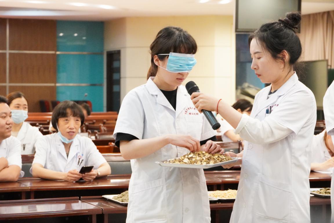近日,嵩县中医院医务人员蒙眼识药。为了提高药师的专业技能,该院开展了“药香中医苑·圣手一抓稳”药师技能比赛。在蒙眼识药环节,参赛选手通过摸、闻、品尝等方法,准确地识别从30种中药饮片中随机抽取的5种中药材,展现出精湛的业务能力。 刘永胜 李维娜 王义飞/摄