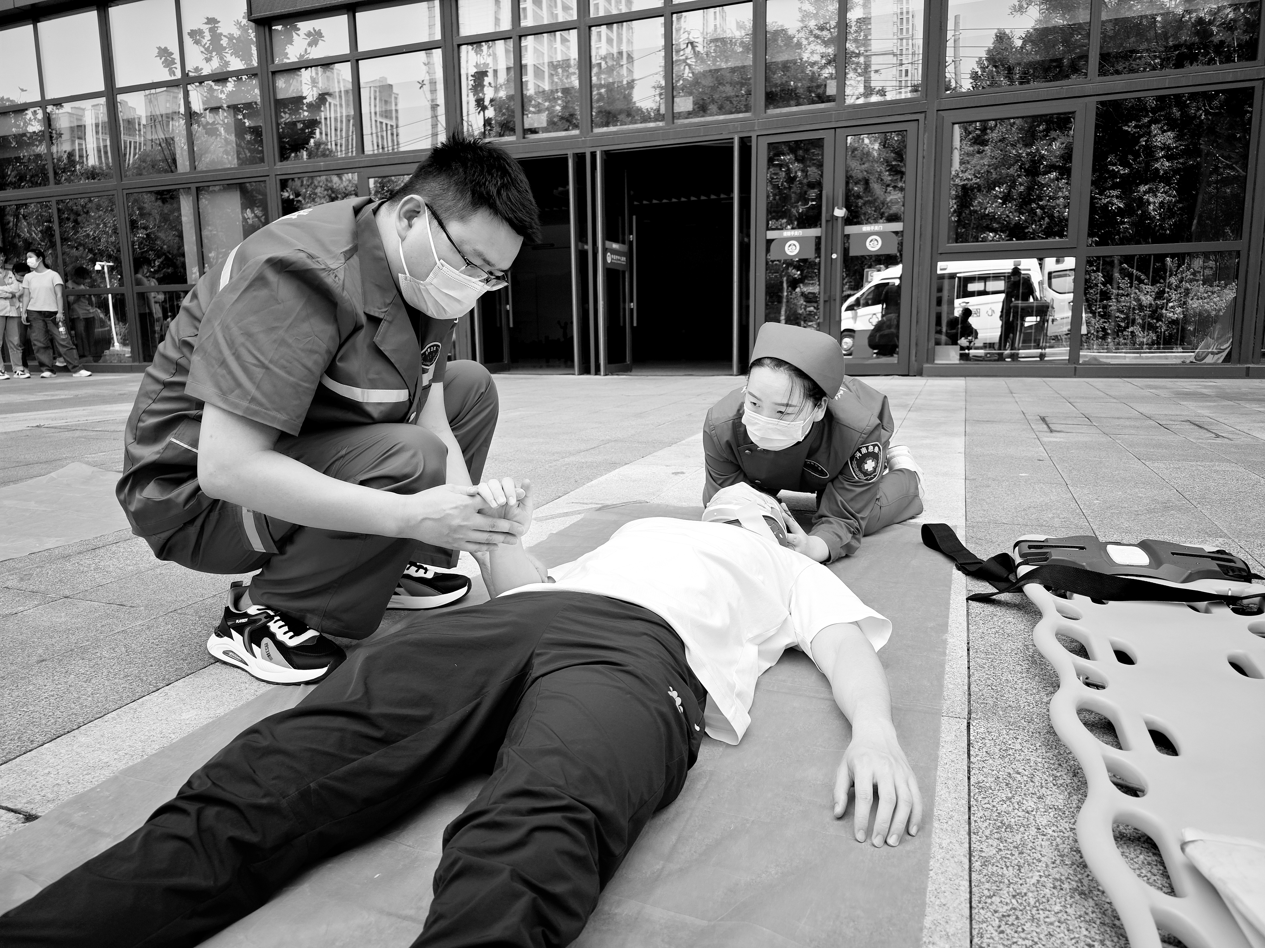 6月30日,在许昌市中心医院鹿鸣湖院区,应急人员进行卫生应急演练。当天,由许昌市卫生健康委主办、许昌市中心医院承办,许昌中医院、许昌市立医院和许昌市120急救指挥中心协办的2023年防汛卫生应急演练举办。此次演练通过模拟实战方式检验预案、完善机制、锻炼队伍,进一步提升应急人员应对突发汛情的处置能力。 王正勋 侯林峰 时 歌/摄