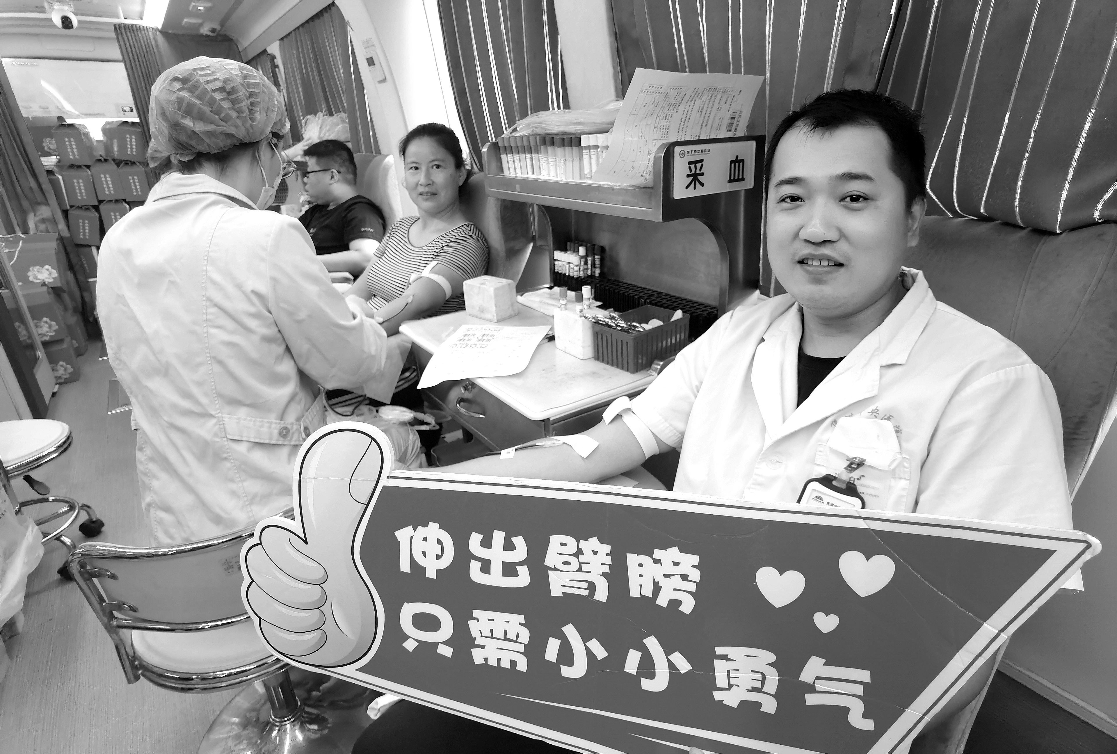 志愿者在无偿献血