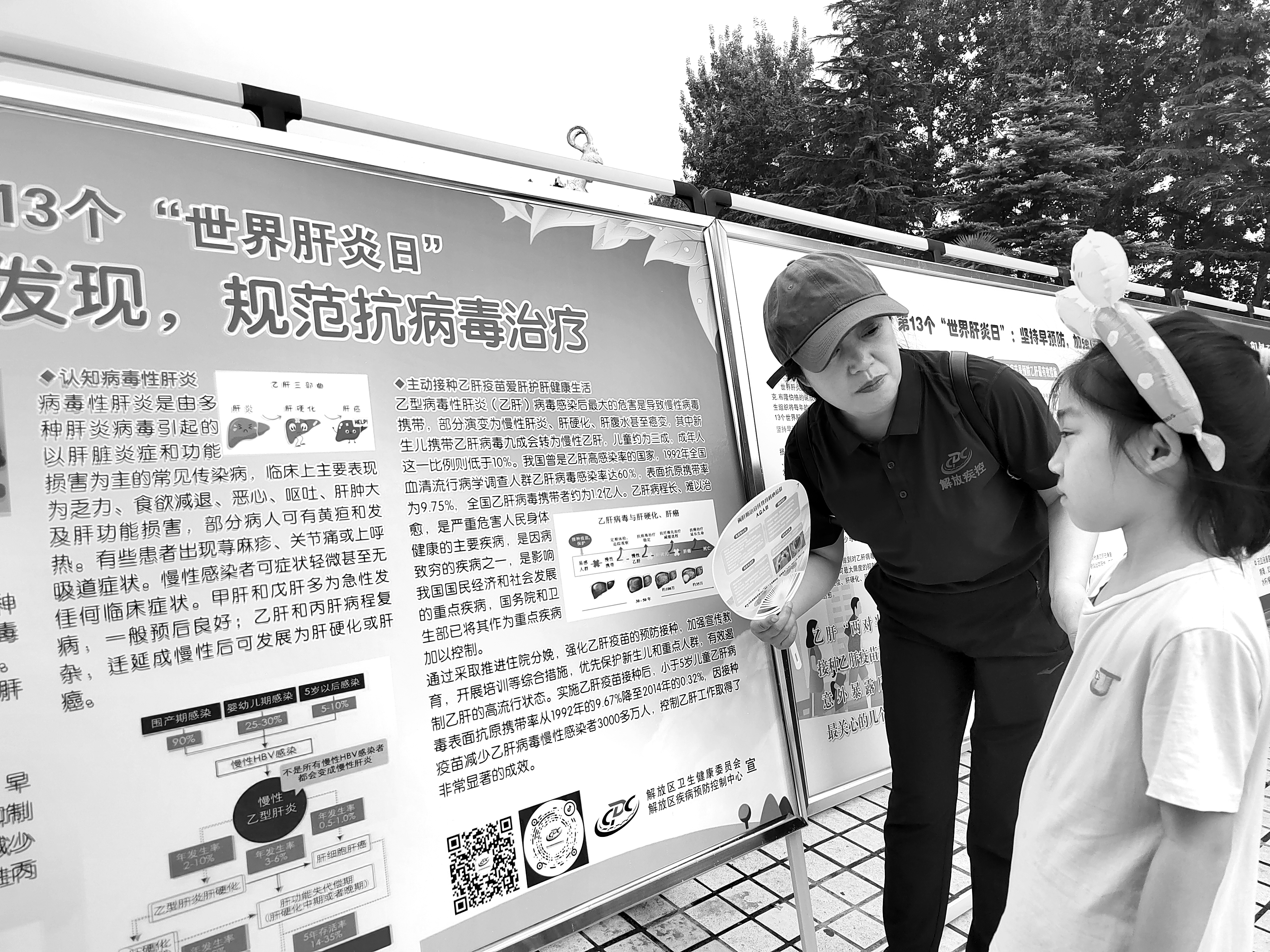 图①7月28日,郏县疾病预防控制中心组织工作人员向群众宣传肝炎防治知识。 王 平 雷素霞/摄
