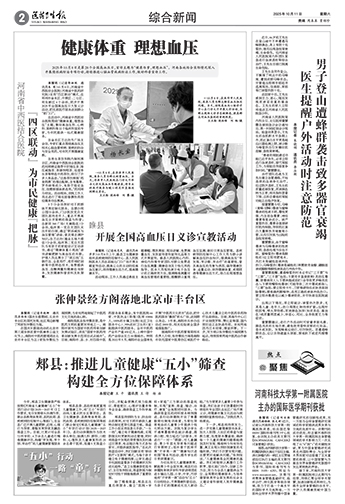 2025年10月8日是第28个全国高血压日,宣传主题为“健康体重,理想血压”。河南各地结合实际情况深入开展慢性病防治专项行动,持续推进心脑血管疾病防治工作,做好科普宣传工作。