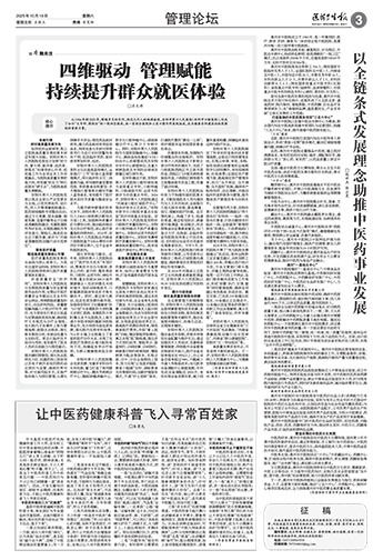 漯河市中医院成立于1982年,是一所集预防、医疗、教学、科研、康复为一体的综合性中医医院,是漯河市唯一的三级甲等中医医院。 漯河市中医院由院本部、康复院区、针灸院区、中医治未病中心构成特色鲜明、格局清晰的“一院三区”模式;总占地面积29098平方米,总建筑面积55049平方米,实际开放床位共584张。 漯河市中医院现有在职职工706人,拥有国家中医临床优秀人才3人,全国肛肠科名中医1人,河南省名中医1人,市级知名中医20人,市管优秀专家16人,市科技拔尖人才11人,市青年拔尖人才2人,市科技创新带头人4人;拥有国家级重点中医专科(肛肠科)、省级重点中医专科(脑病科、血液肿瘤科)、市级重点中医专科和特色专科(心病科、骨伤科、针灸科)。 面对当前中医药发展的挑战与机遇,漯河市中医院在多方探讨和实践中,逐渐形成了从名医名家、道地药材、院内制剂、智能煎配、中药药膳、衍生品开发等领域发力,走“高端树品牌,基层惠民生,产业求突破”立体化发展的工作思路。 打造高端的中医药服务项目“三名六中心” 漯河市中医院以在建中医治未病中心为载体,联合国内知名中医流派组建专家团队与运营团队,构建“三名六中心”体系,提升高端中医药服务能力。 “三名”建设 名医:漯河市中医院引进国内知名中医传承人常驻坐诊,形成“常驻+定期”服务模式,解决区域疑难健康问题,保障诊疗专业性。 名药:漯河市中医院设置精品中药房,建立药材溯源体系,有效把控药材采购、储存、调配等环节,确保群众用上“放心药、有效药”,从药品质量上保证中医诊疗质量。 名馆:建设中医药文化博物馆,展示从古至今的中医药设施,讲述中医药发展历程和历史积淀,展示中医药文化的深厚底蕴。 “六中心”建设 糖尿病中心:漯河市中医院组建高水平的中医治疗糖尿病专家团队,开展以中医调理为主、饮食调节为辅的中西医结合治疗,为糖尿病患者提供全周期健康管理服务。 中医外治中心:漯河市中医院整合针灸、推拿、艾灸等多种外治疗法,针对颈肩腰腿痛、消化系统疾病、亚健康状态等,提供个性化诊疗方案。 藏浴中心:漯河市中医院融合藏医养生理念,通过药液浸泡、熏蒸等方式,实现疏通经络、祛病强身的养生效果。 中西医结合减重中心:漯河市中医院采用“西医评估+中医干预+生活方式指导”模式,遵循健康优先原则,帮助群众安全减重、改善代谢指标。 月子中心:漯河市中医院以中医特色护理为核心,融合现代母婴护理理念,提供产后调理、新生儿保健等服务,配备专用设施与24小时医护支持。 药膳中心:漯河市中医院结合漯河食品生产研发优势,开发药膳及药食同源产品,研发符合大众需求的健康食品,推动中医药与食品产业融合。 建好“一基地五中心” 漯河市中医院建好“一基地五中心”(中原食品实验室-漯河市中医院成果转化基地;中药制剂研发推广中心、中药煎配中心、中药膳食研发推广中心、中药药妆研发推广中心、中医药衍生品研发推广中心),力求满足患者和社会大众需求。 围绕提高中药煎配制剂水平开展工作 漯河市中医院在做好医院中药采购、确保中药质量基础上,围绕煎好药、做好院内制剂做文章,投入资金约3000万元,以保证药品质量,提升医院收入。 一是结合当前中药煎配中的堵点难点,针对煎药质量不高,难以真正做到先煎后下、一煎二煎、文火武火等要求,以中药煎配中心为着力点建设漯河市智慧中药房,彻底解决中药煎配质量不高的难题。建成后的煎配中心一方面要满足漯河市中医院需求,保证漯河市中医院患者用药质量;另一方面还要在市政府支持下,按照中药煎配“统一管理、统一标准、统一质量”的准则,面向全市其他中医院和中医馆,采取网络下方剂、线下送药的方式。目前,设计招标设备选型工作已经完成,预计年底前完成设备安装并投入使用,实现“全市中药全域煎配”。 二是投资扩建高水平的制剂中心。漯河市中医院在原有制剂设备、车间基础上,积极谋划医院制剂车间的建设工作,主要配备提取、浓缩、粉碎等专业设备,优化制剂生产流程,提高院内制剂产量与质量稳定性,满足临床用药需求。 围绕确保制剂质量开展工作 漯河市中医院将医院药品检验室整体迁入中原食品实验室,成立中药制剂检验中心,利用实验室设备与技术优势,对中药制剂及药食同源产品检验,保障产品质量安全;联合中原食品实验室技术人员,针对现有院内制剂进行升级迭代,同时研发新的制剂品种,填补临床需求空白,提升制剂研发与产业化能力。 做好中医药衍生品研究开发工作 漯河市中医院针对中医院现有中医药衍生品众多(成熟配方已有150余种),积极学习沿海省市经验,采取与有关公司合作的方式推动中医院的中药衍生品走向市场,达到经济效益与社会效益双赢的局面;与有关公司签订合作协议,由医院提供产品配方,公司负责产品的生产和营销,医院与中原食品实验室共同负责产品的监制,分别从中医辨证、药理等角度对研发产品进行分析,确保开发生产的产品有利于身体健康。 漯河市中医院组建专门的中医药衍生品研发团队,拟定药酒、功能性产品、药妆、药茶、药膳等研发方向,推动养生茶饮、中药日化、药膳等产品升级,打造药食同源特色品牌。 营造浓厚的中医药文化氛围 中医药研学:漯河市中医院依托中医药文化博物