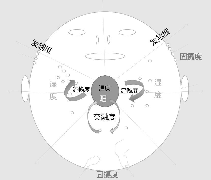 负阴抱阳的生理结构 人胚胎发育始于受精卵,其形圆如球,内含先天之阴阳,象征着人体的整体性、统一性与完整性,是为“一”。此细胞内阳气冲荡摇和不断分裂分化,形成人身,而其基本结构可抽象为“人身球模型”。生命始于一个细胞(受精卵),其形为圆;发展为人身后,其基本结构和功能运作仍可视为一个内在联系的“球体”系统。 笔者认为,“人身球模型”具有以下特征:一是整体性。外显为负阴包阳,阴阳合和的相对恒温恒湿皮囊体,理解为“球”。二是可调节性。这一“球体”表面有九窍:双眼、双耳、双鼻、口、前阴(含阴道)、后阴(肛门),共为九窍,是人体与外界沟通、物质能量(气、血、津、精、液、水、湿、寒、热)交换、通行或调节的主要通道。另有玄府(汗孔)为小孔:周身汗孔为无数小窍,司气液体表流通与出入调节体温和水气平衡。三是直观性。负阴抱阳之平衡态比较抽象,设立“人身球模型”可直观了解阴阳冲和,保持动态平衡的6个维度:人体如同一个充满气血津液的球囊,阴(水、精、津、血、液)为物质基础,阳(气、热、神、动)为冲和能量动力,二者相抱相融,“冲气”(如搅拌之力)居中调和,维持动态平衡。其中的温度、湿度、发越度、固摄度、流畅度、交融度6个维度直观可见,易于理解阴阳冲和激荡,合和平衡的动态维持景象。 人体被抽象为一个动态平衡的“人身球模型”。其理想状态是:负阴,人体承载着有形的物质基础(精、血、津、液等)。抱阳,物质基础中蕴涵着无形的功能动力(气、热、能量)。“冲气”以为和,阴阳二气在体内不断交汇、激荡、循环、化生、开阖、出入,最终达到阴平阳秘,阳化阴生的恒温恒湿和谐统一的“和”的状态。“人身球模型”中的6个维度,即温度(寒热)、湿度(燥湿)、交融度、流畅度、发越度和固摄度,是衡量人体内“阴阳冲、负、抱”是否和谐的关键指标。这6个维度,是判断是否达到“和”的诊断纲领。 哲学思想的可视化 “人身球模型”是对《道德经》“万物负阴而抱阳,冲气以为和”这一哲学思想转化为可操作、可衡量、可治疗的临床语言,并将其完美应用于中医的整体观和疾病观。负阴,“负”是背负、承载之意,指人体这个“球”以阴精(津、液、精、血等有形物质)为内在基础和载体。“人身球模型”的白色球体本身,就代表着这个承载一切的物质基础。抱阳,“抱”是怀揣、涵藏之意,指人体的生命活动(阳气、热能、功能)蕴藏并运行于这个物质基础之中。“冲气以为和”中的“冲气”,并非具体之气,而是一种动态的、调和的力量与过程,最终达到和谐状态的运动机制。“冲气以为和”中的以为和,最终达到“阴平阳秘”和谐、平衡的恒温恒湿健康状态。阴阳之间的循环箭头,就是“冲气”这一动态调和过程,表明阴阳并非静止对立,而是在不断地交融循环中达成平衡。 6个维度的详解 温度(寒热)是指人体阳气的温煦功能和阴液的凉润功能之间的平衡程度,直接对应传统八纲中的“寒热”。阳盛(抱阳过度)包括阳气内生过快和向外各孔窍散发受阻,则温度过高,表现为热证(发热、面红、口渴等)。阴盛(负阴过度)包括阳气虚少和阴邪过盛伤阳,则温度过低,表现为寒证(畏寒、肢冷、面色苍白等)。“冲气”和,则阴阳交融得当,体温恒定,不畏寒也不惧热。 湿度(燥湿)是指人体内津液(阴)的生成、输布和代谢状态,是“负阴”功能是否正常的直接体现。阴津不足(负阴不及),则湿度太低,表现为燥证(口干、皮肤干燥、便秘等)。水湿停聚(负阴过度/交融气化不及),则湿度太高,表现为湿证(身重、痰多、便溏、水肿等)。“冲气”和,则阴津输布均匀,肤无肿瘪,口润不渴,汗尿正常。 交融度是核心的维度,直接对应“冲气”的功能,指气与血、阳与阴、功能与物质之间相互转化、促进、制约的和谐程度。交融度低(“冲气”不及),阴阳分离,阳不化阴,气不生血,气血不和;表现为气滞、血瘀、痰凝(胀、痛、肿块),即物质与功能无法有效结合。交融度过度,“冲气”过亢,同样是一种失衡;表现为阴质消耗过快,或功能过亢,即物质无法被有效涵藏而与功能交融。“冲气”和,则气血通畅,精力充沛,谓之“阴平阳秘”。 流畅度是交融度的实现路径,指气、血、津、精、液、水、湿、寒、热在体内运行的通畅程度,是“冲气”动力大小的体现。流畅度低,则气机郁滞、血流瘀阻、津液停聚。这是“冲气”动力不足或通路阻塞的结果。流畅度过高,则通常为病态,如气虚不摄导致的血溢脉外(出血),也可理解为一种“滑脱”。“冲气”和,则经络通畅,无任何胀痛、麻木之感。 发越度与固摄度是一组对立统一的维度,共同调控人体气机的内外出入和窍道的开阖,共同实现“抱阳”与“负阴”的平衡。发越度指阳气能量向外、向上通过诸窍宣发的趋势和程度(如出汗、流泪、流涎、呼吸、排便、排尿)。固摄度指气、血、精、液向内、向下收敛固守的趋势和程度(如维持体温、固摄血液津液等)。发越过度与固摄不及,表现为诸窍泄漏(自汗、盗汗、遗精、崩漏、气短乏力等),阳气阴精不能内守。发越不及与固摄过度,表现为诸窍郁闭(无汗、怕风、胸闷、水肿、闭经、便秘)。气机不得宣散,阴分郁闭体内。“冲气”和,则该出汗时出汗,该收敛时收敛。体表窍道开阖有度,能有效抵御外邪且内部物质不妄泄和郁滞。 “人身球模