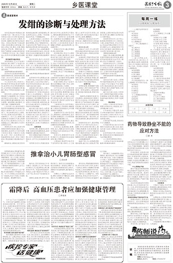秋季湿性重浊,易阻遏气机,碍胃伤脾,加之小儿有“心肝有余,肺脾不足”的生理特点,此期间易出现胃肠型感冒。若小儿出现上述情况且伴有流涕、轻微咳嗽,舌苔偏黄腻或白腻,很可能是患了胃肠型感冒。对于患胃肠型感冒的小儿,除了服用治疗感冒的药物外,还可以应用中医推拿治疗。 开天门穴、推坎宫穴:位于前额,具有疏风解表、升阳通窍之功效。天门穴为两眉之间至前发际呈一条直线,坎宫穴为眉心至眉梢呈一条直线。重复操作50次。 推天柱:项后发际线正中至大椎呈一条直线,自上向下推100次~300次,可以起到降逆止呕、解表发汗作用。秋湿发热较重者可用刮法,以姜汁或凉水为介质,从上向下刮,刮至皮下轻度瘀血为度。 清肺经:湿遏卫阳,肺气不清,邪在肺卫。肺经为无名指掌面由指尖向指根呈一条直线,沿整个无名指掌面至指根推向指尖200次,清肺经可有宣肺清热、疏风解表之功效。 补脾经:小儿脾虚无以运化水湿,脾经为拇指末节螺纹面,旋推200次,可以健脾、扶正化湿。 清天河水:胃肠型感冒多伴发热,清天河水可清气分热,适用于一切热证,前臂正中腕横纹向肘横纹直推,以清水或薄荷水为介质。本法退热效果较佳,推100次以上,一般可见小儿微微汗出。发热温度较高,用本法后若未见出汗,则用拍法沿天河水拍击30遍或天柱穴刮痧。 揉中脘穴、分推腹阴阳:若出现呕吐、腹泻等症状,可以加健脾和胃、理气化湿。中脘穴在腹部前正中线上,肚脐和胸剑联合的中点,用中指揉之。分推腹阴阳用两拇指端沿肋弓角边缘或从中脘穴至脐部,向两旁分推100次。 催吐法:对于体质较好的小儿,出现发热,脘腹胀满不适,呕吐不出,大便不解,可以进行催吐。本法较耗伤气血,谨慎用之。 (作者供职于河南中医药大学第一附属医院) |