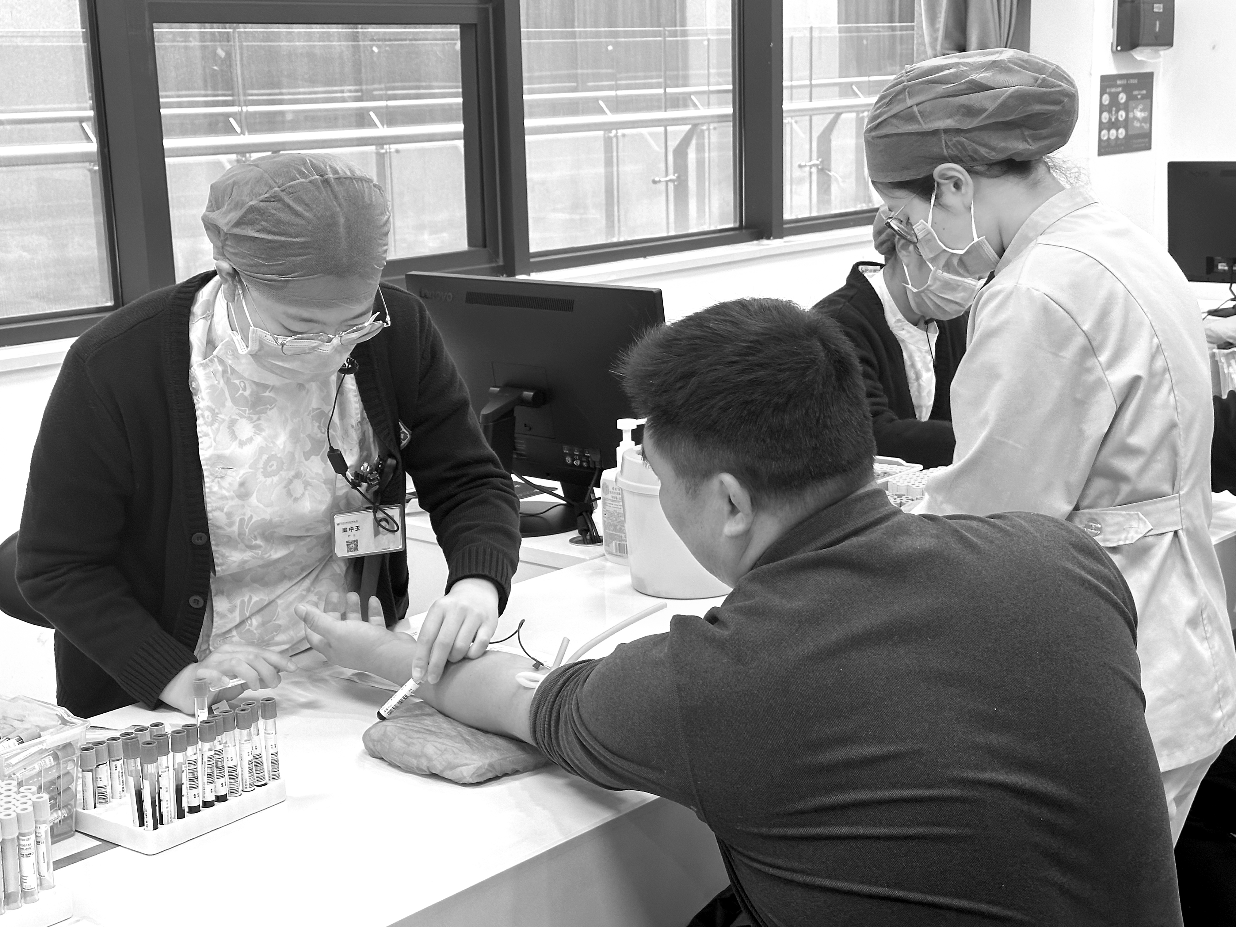 ↑10月24日,在黄河科技学院附属医院,医务人员为英模体检。当天,黄河科技学院附属医院开展2025年度见义勇为英模健康体检活动,进一步弘扬见义勇为精神,汇聚社会正能量。