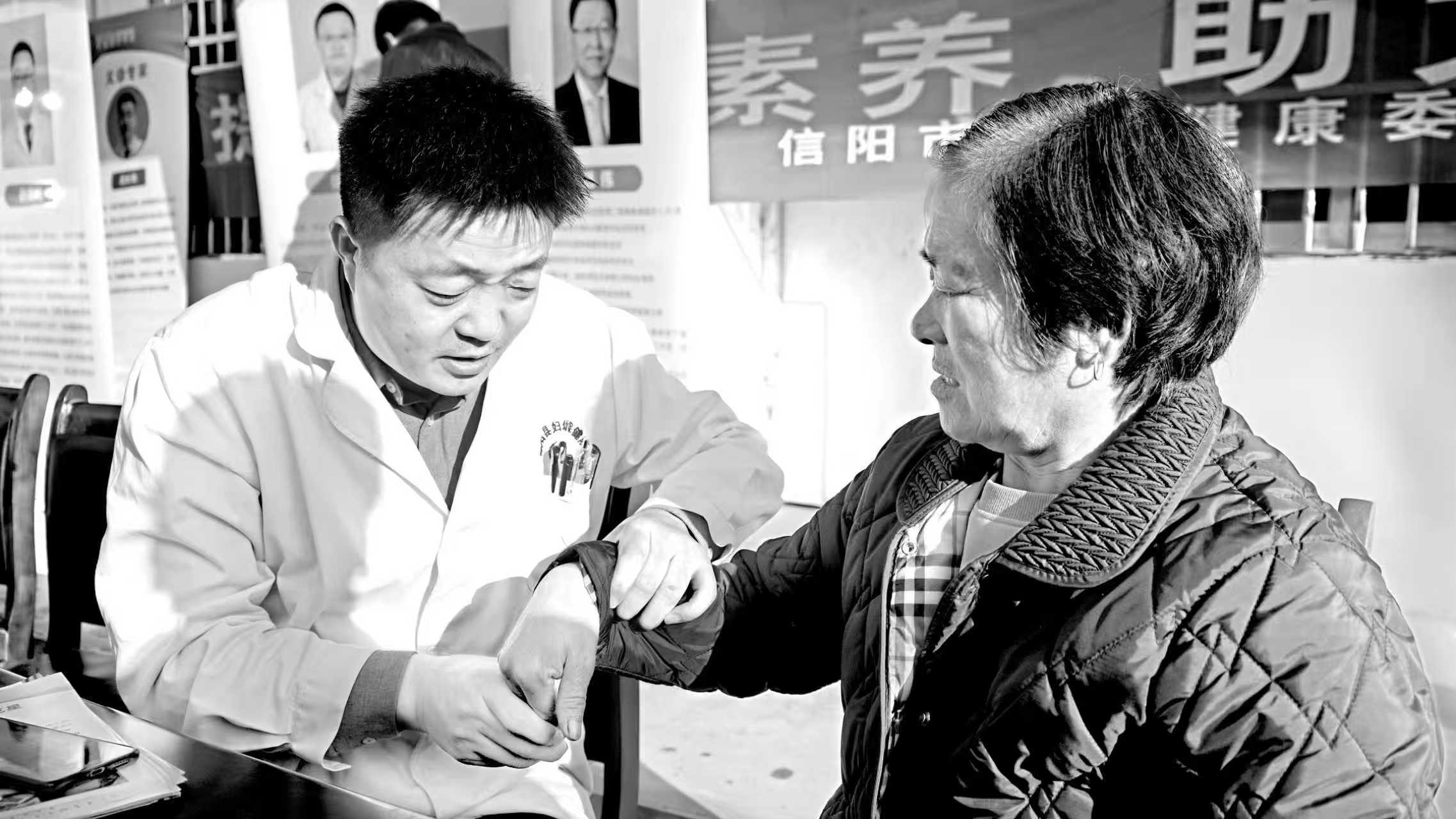 10月29日上午,在固始县赵岗乡南天门村,医务人员为村民检查身体。